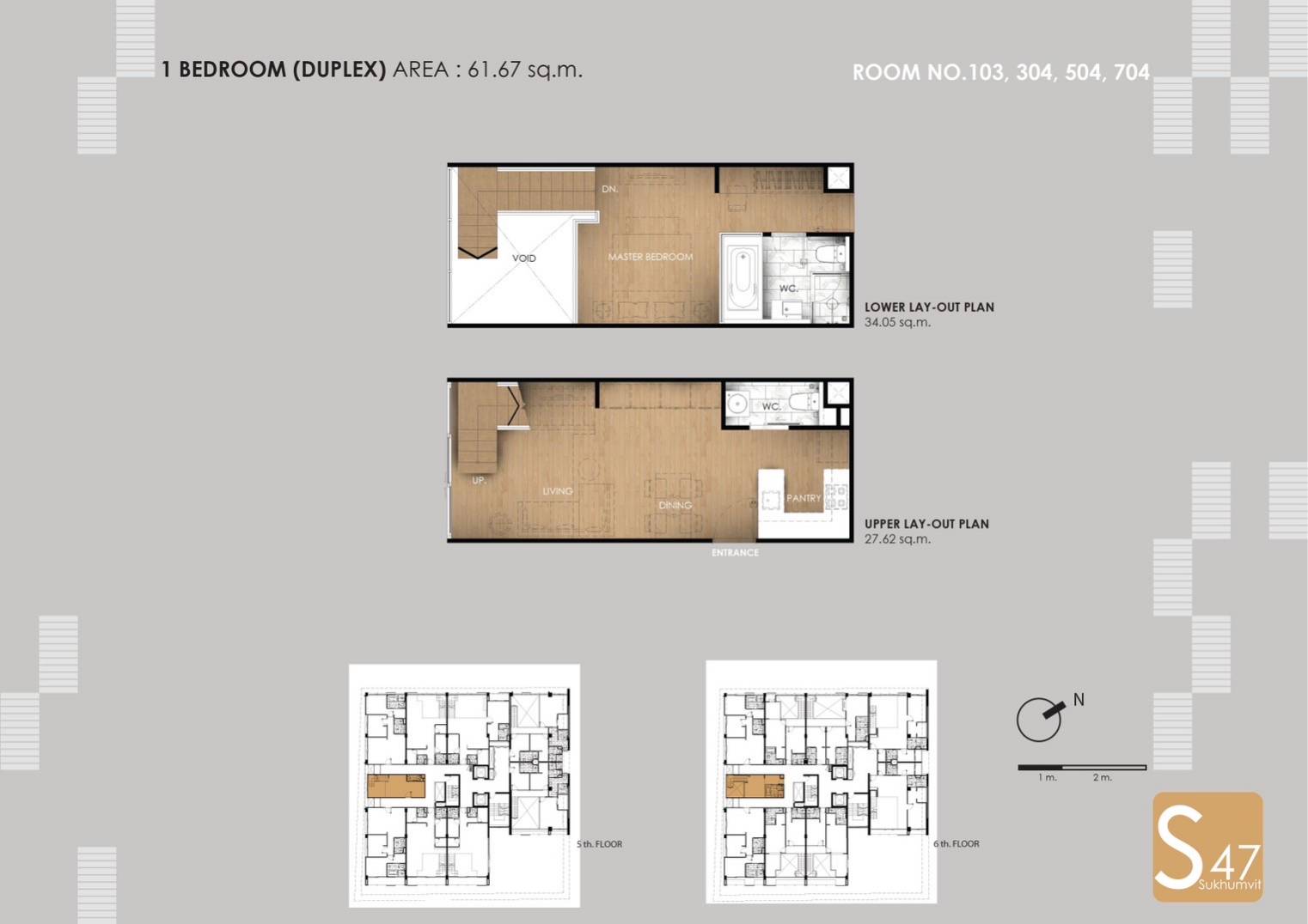 1ベッドルーム(デュプレックス) 61.67 sq.m ฿ 10,700,000~