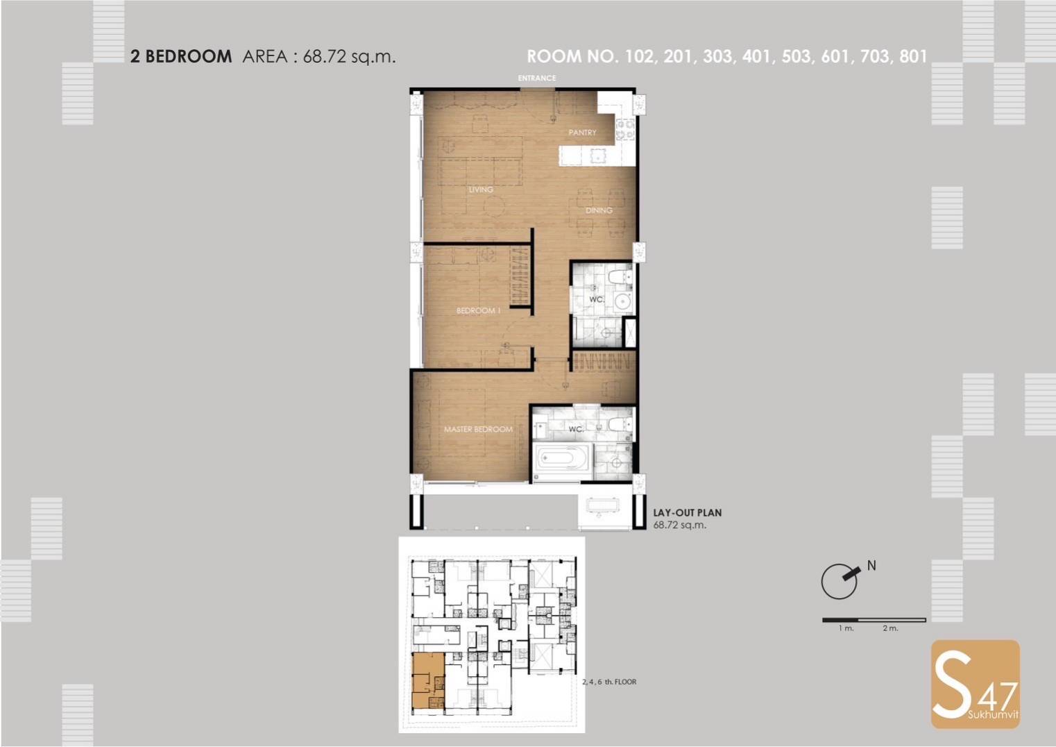 2ベッドルーム 68.72 sq.m ฿ 9,900,000~
